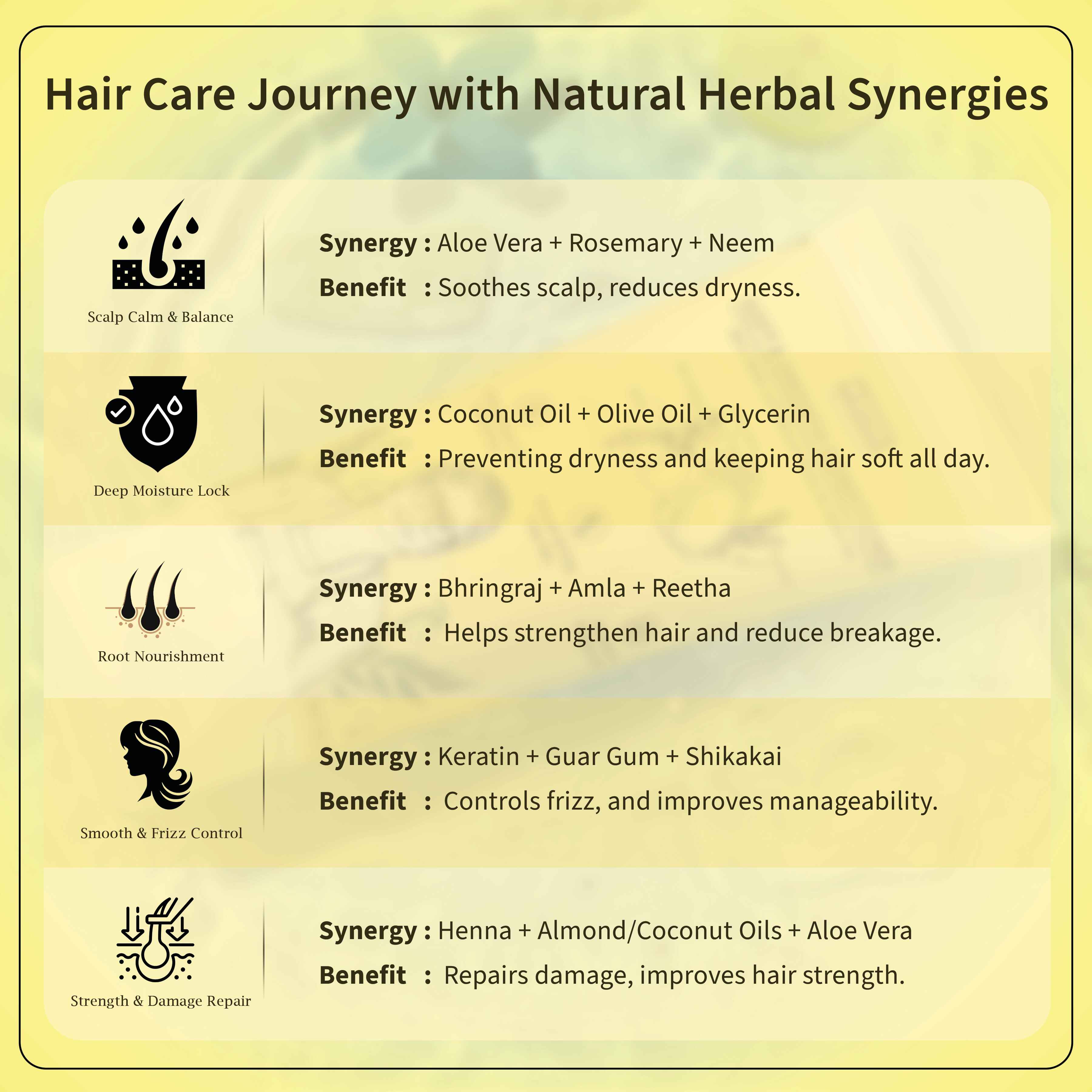 | Keratin | Glycerin | Aloe Vera | Shikakai |